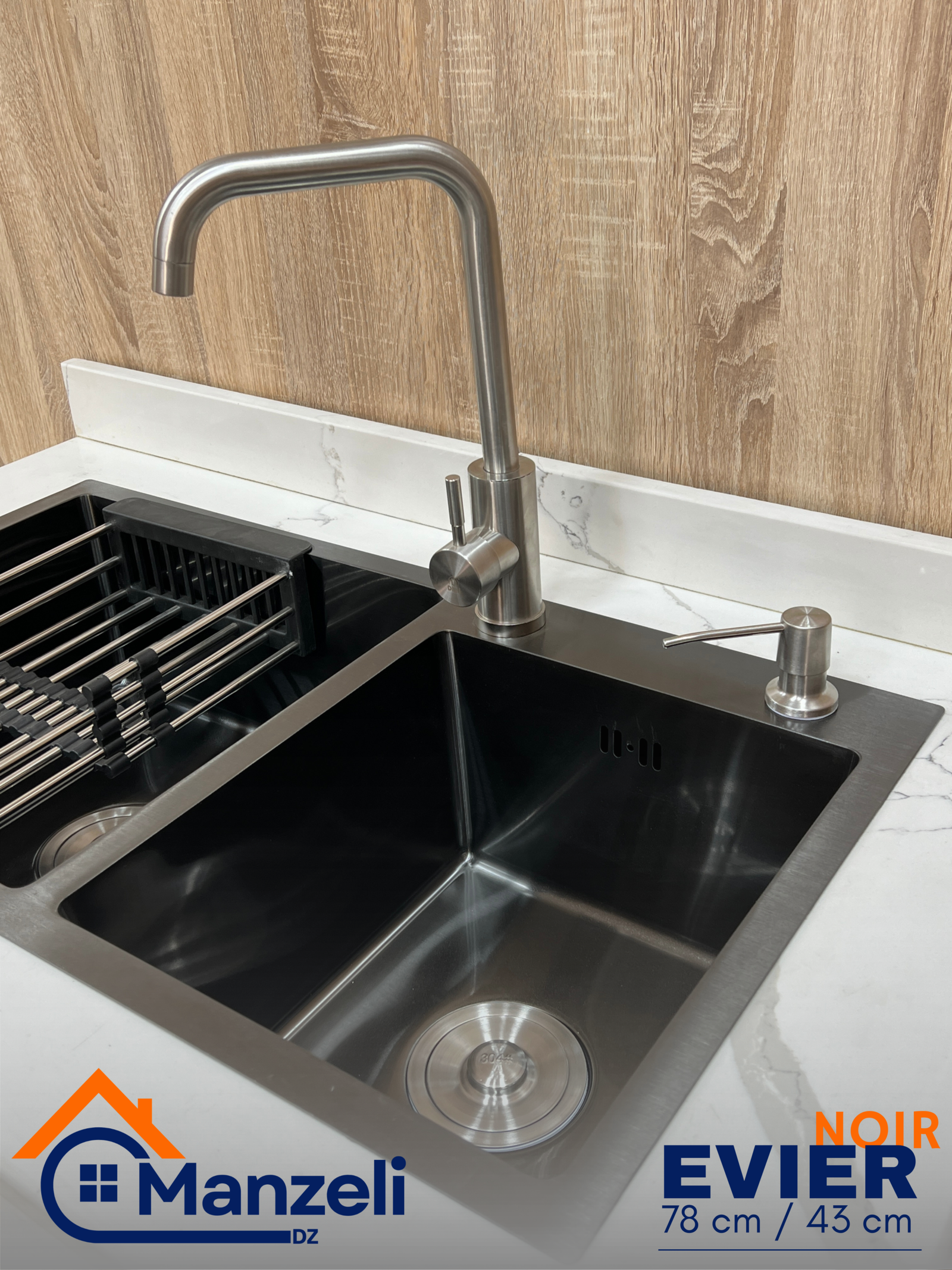 Home Éviers de Cuisine EVEIR CUISINE 78/43cm INOX 304 + ROBINET 360